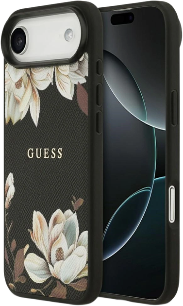 Панель Guess Grained Flowers Classic Logo MagSafe для Apple iPhone 17 Air Black (GUHMP17MPGNMPLMK) - зображення 1