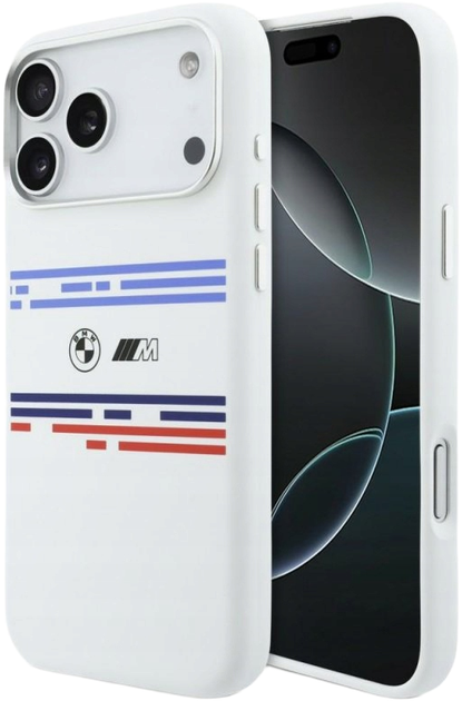Панель BMW M Silicon Horizontal Line MagSafe для Apple iPhone 17 Pro White (BMHMP17L25SHOTSH)