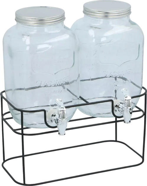 Металева підставка є ідеальним доповненням до набору, дозволяючи стабільно розмістити банки і полегшити подачу напоїв. Цей елегантний аксесуар також додає естетики і стилю, що робить набір привабливим декоративним елементом на будь-якому столі або буфеті.