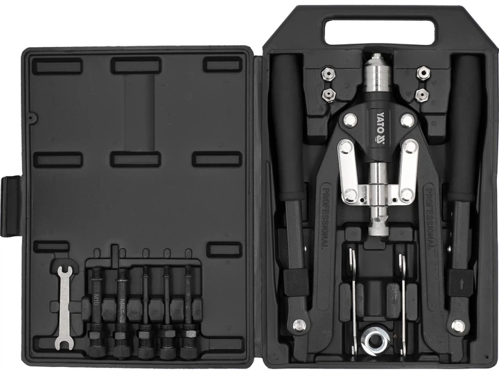 Професійний, міцний важільний заклепувальник YATO для встановлення заклепок та заклепувальних гайок.