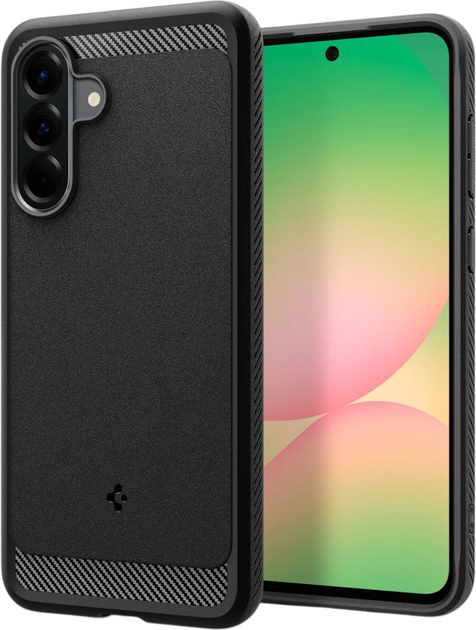 Чохол Spigen Rugged Armor для Samsung Galaxy A56 5G – чорний. Чохол Spigen Rugged Armor – це ідеальне поєднання елегантного дизайну та виняткової міцності, створений спеціально для користувачів Samsung Galaxy A56 5G. Виготовлений з гнучкого, стійкого до стирання ТПУ, він забезпечує ефективний захист від подряпин, падінь та щоденних пошкоджень. Крім того, чохол, оздоблений текстурою з вуглецевого волокна з глянцевим вуглецевим волокном, не тільки виглядає сучасно, але й чудово лежить у руці. Вбудовані повітряні подушки по кутах підвищують ударостійкість, забезпечуючи безпеку пристрою в будь-якій ситуації. Ідеально підходить, не заважає кнопкам, камерам чи портам. Це стильний та надійний захист, який дійсно потрібен вашому смартфону!