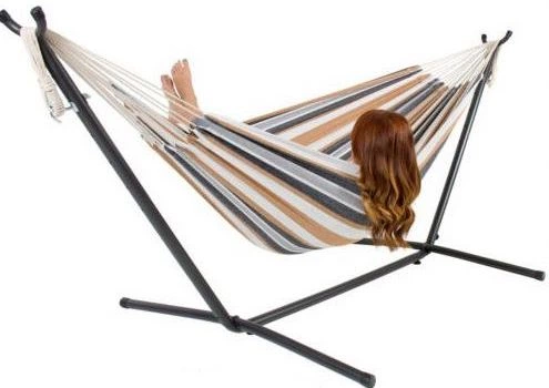 Гамак Hedo Смугастий — це поєднання комфорту, надійності та стильного дизайну, створене для відпочинку вдома й на природі. Завдяки міцному сталевому каркасу та якісній тканині він забезпечує стабільність і довговічність, а смугастий візерунок додає йому затишного, літнього характеру. Гамак витримує до 250 кг, тож підходить як для однієї людини, так і для відпочинку удвох. Простора рама розміром 260 × 110 × 107 см гарантує комфортне розташування, а м’яка поліестерово‑бавовняна тканина щільністю 340 г/м² приємна на дотик і забезпечує максимальний релакс. Конструкція поєднує бавовняні шнури та сталеві труби, що робить гамак стійким і безпечним. У комплект входить зручна сумка 110 × 20 × 20 см, яка спрощує транспортування та зберігання. Гамак легко збирається, тому його можна брати з собою на пікнік, у подорож або встановлювати в саду, на терасі чи балконі. Смугасті природні відтінки гармонійно вписуються в будь-який ландшафт, створюючи атмосферу спокою та відпочинку — ідеальне місце, щоб насолодитися сонячним днем або вечірнім небом.