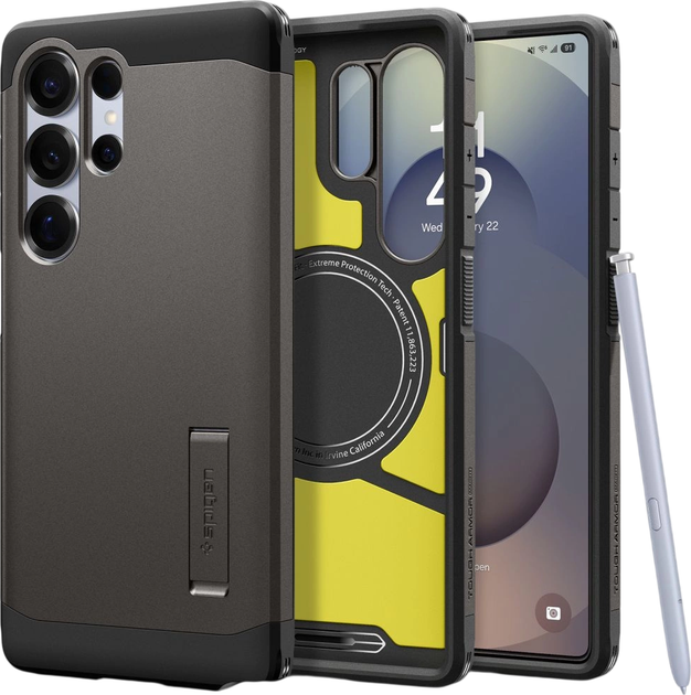 Чохол Spigen Tough Armor Magsafe — це оновлена версія свого попередника. Він оснащений магнітним кільцем, сумісним із кріпленням MagSafe, та системою бездротової зарядки, що забезпечує швидке та просте використання технологій Apple.
