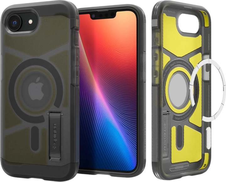 Серія чохлів Spigen Tough Armor — це вдосконалена версія свого попередника. Чохол оснащений магнітним кільцем, сумісним з MagSafe та бездротовою зарядкою, що забезпечує швидке та просте використання технологій Apple.