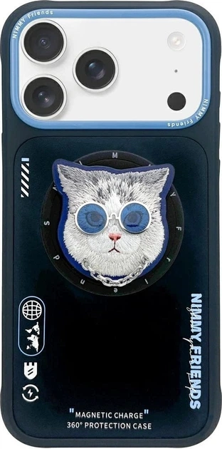 Панель Nimmy Glasses Cool Cat MagSafe для Apple iPhone 17 Pro Max Black-Blue (6971080314346)