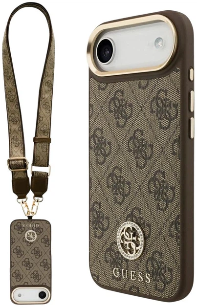 Панель Guess 4G Strass Logo & Big Strap Metal Buttons MagSafe для Apple iPhone Air Brown (3666339550967) - зображення 1