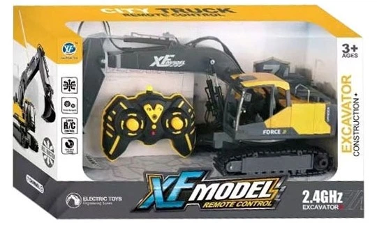 Радіокерований екскаватор з гусеницями, поворотом на 360 градусів та рухомою рукояткою. Пульт дистанційного керування виконаний у стилі ігрового контролера та має характерні жовті кнопки. Екскаватор працює від батарейок (входять до комплекту), а для контролера потрібні 2 батарейки типу АА (не входять до комплекту).