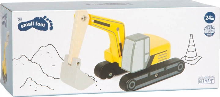Цей екскаватор з дерев'яним ковшем – ідеальний транспортний засіб для юних будівельників. Міцний екскаватор обертається на 360 градусів, що забезпечує безпечне пересування та транспортування вантажів. Рука екскаватора рухома у двох точках і має рухомий ківш на кінці, яким легко керувати вручну. Колеса транспортного засобу майстерно заховані під штучними коліями, що надає екскаватору реалістичного вигляду. Ця будівельна машина вражає своєю стійкістю, міцною конструкцією та оптимальною ігровістю, що робить її обов'язковим елементом для будь-якого будівельного майданчика в дитячій ігровій кімнаті. Маневрування дерев'яним екскаватором покращує координацію рук і очей у дітей, дозволяючи їм розкрити свою уяву та вигадувати різноманітні будівельні сценарії. Гра з цим іграшковим транспортним засобом також сприяє соціальній взаємодії, оскільки діти разом планують та реалізують власні будівельні проекти. Обов'язковий елемент для всіх юних ентузіастів автомобілів та вантажівок, які люблять творчі рольові ігри.