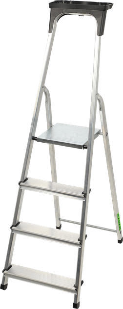 Шукаєте драбину, яка підійде для ремонту або щоденної роботи? Надійний інструмент для роботи на невеликій висоті? Алюмінієва драбина з полицею для інструментів — це незамінний пристрій, який повинен бути в кожному будинку. Ви неодмінно оціните його під час періодичних ремонтів, а також під час виконання домашніх обов'язків. Зручна і міцна конструкція драбини забезпечує безпеку використання і простоту експлуатації. Переконайтеся, наскільки функціональна наша домашня драбина!