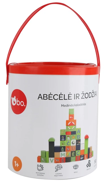 Навчальний набір дерев'яних кубиків «Алфавіт і слова» знайомить дитину зі світом літер і слів, за допомогою яких вона вивчає літери литовської мови, а також розвиває здатність поєднувати літери з малюнками. Цей набір є чудовим першим кроком у навчанні читання. Самі блоки двосторонні – на одній стороні літери, а на іншій – слова, що робить навчання ще більш цікавим! Конструктор поставляється в багаторазовій упаковці з кришкою-сортувальником.