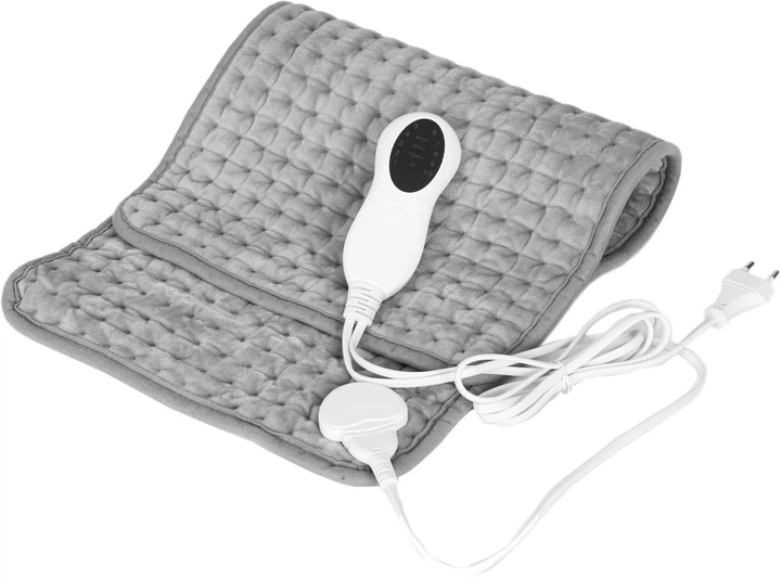 М’яка грілка забезпечує рівномірний нагрів і допомагає зняти напруження та біль, покращуючи кровообіг. Має зручний пульт керування, 10 рівнів температури (30–48 °C) і таймер на 45, 90 або 120 хвилин з автоматичним вимкненням.