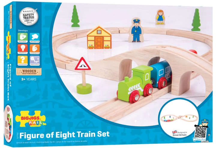 Дерев’яний залізничний набір у формі «вісімки» — 26 елементів для творчої гри