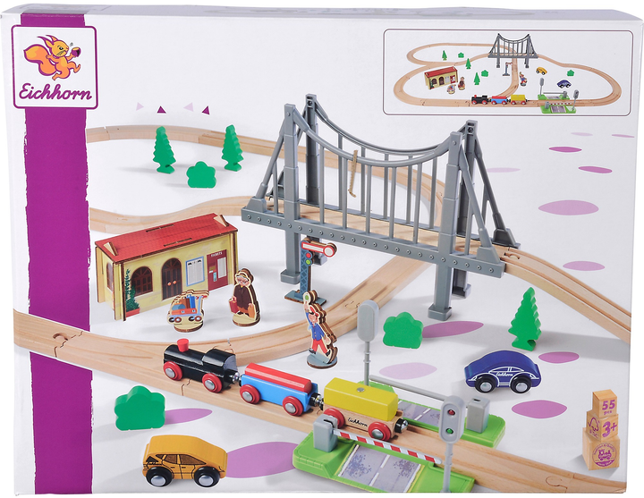 Дерев’яний залізничний набір Eichhorn з мостом — 55 елементів для великої пригоди