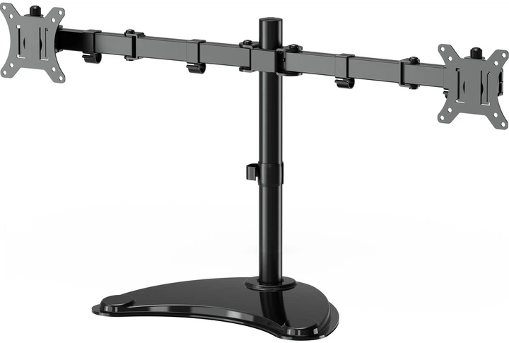 Підставка підходить для більшості LCD-моніторів з діагоналлю від 13 до 32 дюймів і підтримкою стандартів VESA 75x75 та 100x100 мм. Кожен кронштейн витримує навантаження до 8 кг, що гарантує надійну фіксацію навіть більших дисплеїв.