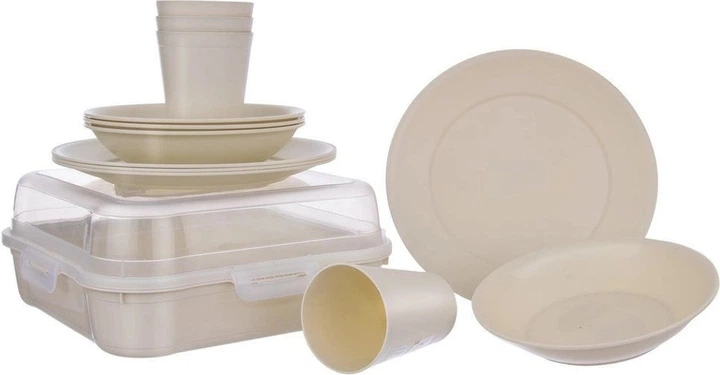 Turystyczny - praktyczny zestaw piknikowy obejmujący talerze, kubki oraz pojemnik do przechowywania z klipsami. Zapakowany w praktycznym opakowaniu z uchwytem, który pozwoli nam w łatwy sposób przechowywać i transportować artykuły.