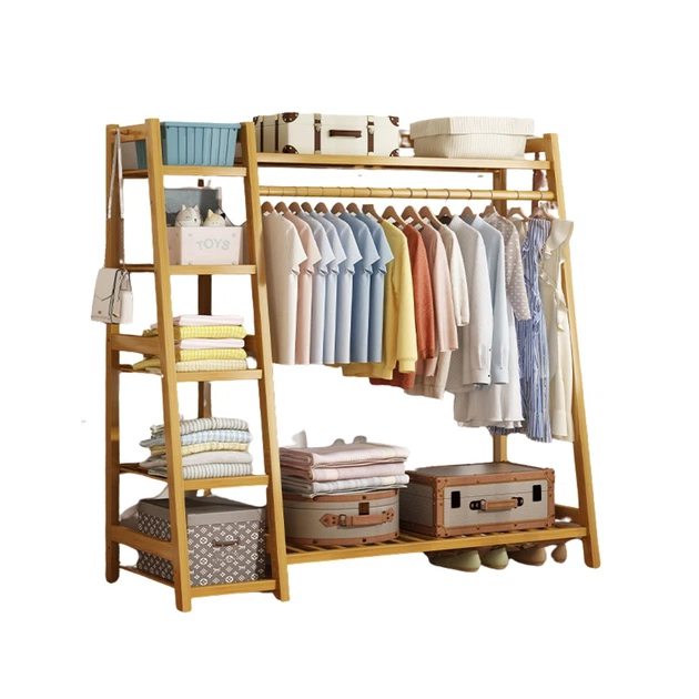 Бамбукова вішалка для одягу з 5 полицями – довжина 130 см.