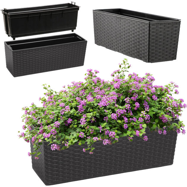 Балконний ящик з вставкою Kadax Murano 19 × 56 см у чорному кольорі — це стильне та практичне рішення для озеленення балкона, тераси чи підвіконня. Модель із серії Murano вирізняється сучасним дизайном, високою міцністю та зручністю у догляді. Завдяки продуманим розмірам 56 × 19.5 см ящик забезпечує достатній простір для вирощування квітів, зелені та декоративних рослин. Виготовлений із якісного пластику, він стійкий до пошкоджень, подряпин, вологи, хімічних речовин і ультрафіолетових променів, що гарантує довгий термін служби та збереження кольору. Модель витримує перепади температур, мороз і високі температури, тому чудово підходить для зовнішнього використання протягом усього року. Вставка всередині полегшує висаджування та догляд за рослинами, а система зливу зайвої води запобігає перезволоженню ґрунту. Ящик легко чистити, має водостійку конструкцію та важить лише 1.3 кг, що робить його зручним у монтажі та переміщенні. Гарантія 2 роки підтверджує його надійність і високу якість.