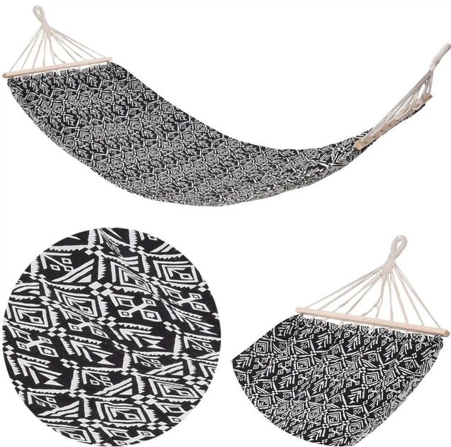 Класичний дизайн - гамак виконаний у модних кольорах, які ідеально поєднуються з вашим садом. Гамак має привабливий чорно-білий візерунок.