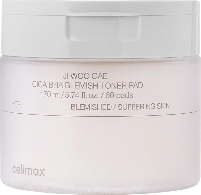 Celimax Ji.Woo.Gae Cica BHA Blemish Toner Pad — корейські тонер-пади для комплексного догляду за проблемною та схильною до висипань шкірою. Просочені активною есенцією, вони поєднують очищення, делікатне відлущування та заспокійливу дію.