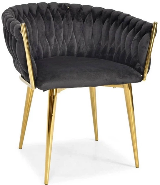ГЛАМУРНЕ ОКСАМИТОВЕ КРІСЛО – ЧОРНЕ | ЗОЛОТИСТІ НІЖКИ | ПЛЕТЕНЕ | СУЧАСНЕ ТА ЕЛЕГАНТНЕДодайте нотку розкоші до свого інтер'єру за допомогою цього гламурного оксамитового крісла, яке полонить своєю елегантністю, комфортом та вишуканим дизайном. Глибокий чорний оксамит чудово доповнює золоті ніжки, створюючи ефект, ніби він прийшов з ексклюзивного шоуруму. Один предмет меблів може перетворити весь інтер'єр, і ця модель робить це миттєво. Плетена спинка огортає вашу спину м'якою декоративною структурою, забезпечуючи високий комфорт, а також привертаючи увагу своєю унікальною майстерністю. Міцні металеві ніжки гарантують довговічність на довгі роки, а м'яке сидіння дозволяє насолоджуватися комфортом, незалежно від того, чи ви обідаєте, працюєте за столом чи відпочиваєте за туалетним столиком. Це крісло – ідеальне поєднання елегантності та функціональності – воно виглядатиме приголомшливо, де б ви його не поставили.