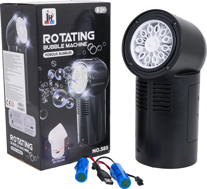 Dzięki temu bańki rozprzestrzeniają się równomiernie w różnych kierunkach. Zasilanie akumulatorem 3,7V zapewnia pełną mobilność, a obecność dwóch akumulatorów w zestawie wydłuża czas działania bez potrzeby ładowania.
