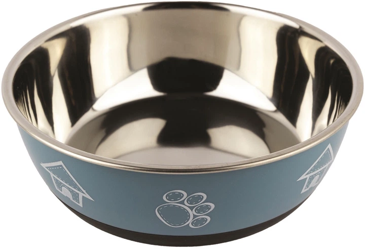 Металева миска Have a Pet – це універсальна миска для собак та котів. Вона виготовлена з нержавіючої сталі, завдяки чому є довговічною, безпечною та легкою для підтримання чистоти. Має протиковзну гумову основу, яка запобігає її ковзанню по підлозі. Її зовнішня стінка пофарбована у синій колір та прикрашена кумедними малюнками будиночка та відбитка собачої лапи.