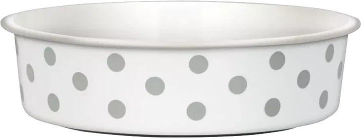Високоякісна нержавіюча сталь забезпечує довговічність, стійкість до пошкоджень та легкість у догляді. Гумова основа стабілізує миску та запобігає її ковзанню по підлозі під час їжі. Білий колір з ніжними сірими крапками надає виробу елегантного, універсального вигляду, який добре поєднується з різними інтер'єрами. Велика місткість 820 мл робить миску ідеальною для собак середніх і великих порід.