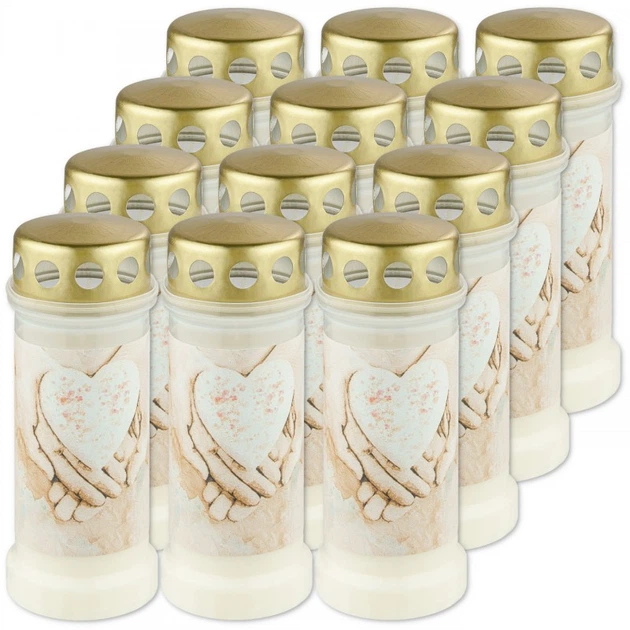 Білі надгробні свічки з часом горіння приблизно 60 годин на свічку. Надгробні свічки Bolsius з мотивом руки та металевою кришкою призначені для розміщення безпосередньо на місці пам'яті.