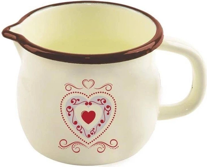 Емальована кружка Tonca підходить для приготування напоїв, підігрівання молока, соусів, пудингів або розтоплення шоколаду для десертів. Натуральні невеликі виробничі особливості (нерівності, несиметричні принти) підкреслюють традиційний спосіб виготовлення та не впливають на якість продукту.