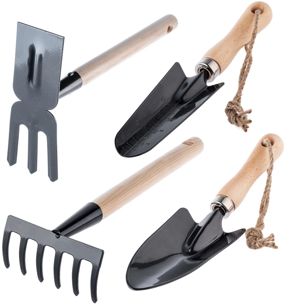 Zestaw narzędzi ogrodowych Kadax K9871 to wygodny i wszechstronny zestaw zaprojektowany z myślą o komfortowej i precyzyjnej pracy w ogrodzie. Krótkie, drewniane rękojeści idealnie leżą w dłoni, zapobiegają otarciom i zapewniają pewny chwyt nawet w rękawicach, umożliwiając wielogodzinną pracę bez dyskomfortu. Zestaw zawiera dwie łopaty – prostą i z podziałką, szpadel oraz grabki z 6 zębami, co czyni go kompletnym rozwiązaniem do pielenia, sadzenia, przesadzania i pielęgnacji gleby. Metalowe głowice o szerokości 11.5 cm i długości 15.5 cm są trwałe i odporne na uszkodzenia, a całkowita długość narzędzi 33 cm zapewnia wygodę użytkowania. Ergonomiczne, antypoślizgowe rękojeści i wysokiej jakości materiały gwarantują trwałość i niezawodność, a 2-letnia gwarancja potwierdza wysoką jakość zestawu. To praktyczny wybór dla osób, które chcą sprawić, by pielęgnacja ogrodu stała się łatwiejsza i przyjemniejsza.