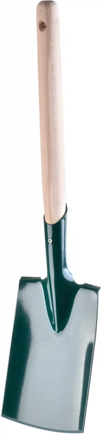 Робоча поверхня має розміри 20.5 x 13.8 см. Дерев'яна ручка легка та стійка до хімічних речовин, що робить її придатною для зберігання як у приміщенні, так і на вулиці. Лопата має просту конструкцію та доступна в зеленому кольорі.