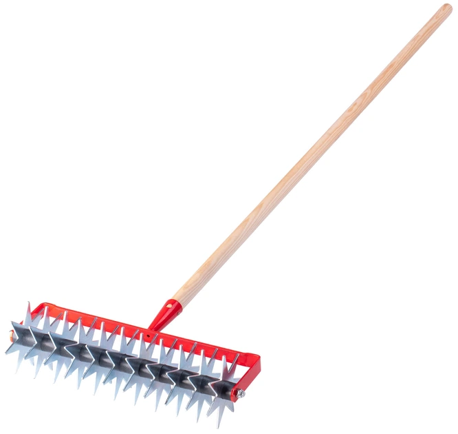 Ручний аератор Kadax Fusa K1344 — це ефективний інструмент для розпушування та аерації ґрунту, призначений для догляду за газоном, грядками та присадибними ділянками. Модель належить до серії Fusa, яка вирізняється високою міцністю та зручністю у використанні. Інструмент оснащений металевими зірчастими дисками, які під час руху вгризаються в ґрунт і розбивають ущільнену поверхню, покращуючи доступ повітря, води та поживних речовин до кореневої системи рослин. Такий тип аератора особливо корисний для відновлення структури ґрунту та підтримання здорового росту рослин. Модель має довгу ручку, що дозволяє працювати у вертикальному положенні та зменшує навантаження на спину. Металева конструкція забезпечує високу довговічність і стійкість до інтенсивного використання. Інструмент підходить для всіх типів ґрунтів і може застосовуватися як для підготовки землі перед посадкою, так і для регулярного догляду за газоном. Це практичний вибір для садівників, які шукають надійний, простий і ефективний інструмент для покращення стану ґрунту.