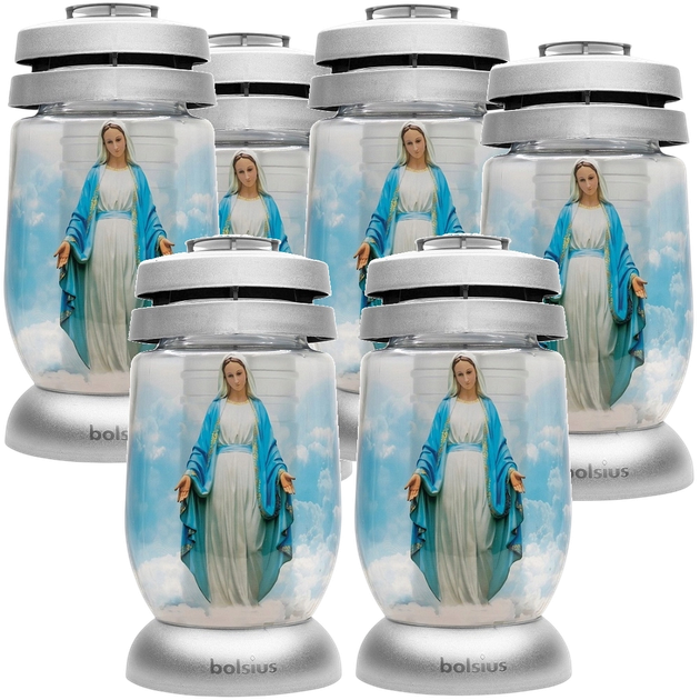Набір містить шість ретельно виготовлених свічок, розроблених з увагою до деталей та високої якості. Мотив Діви Марії надає їм унікального, позачасового характеру, що робить їх гармонійним доповненням до будь-якого надгробку та заохочує до моментів роздумів та спокою.