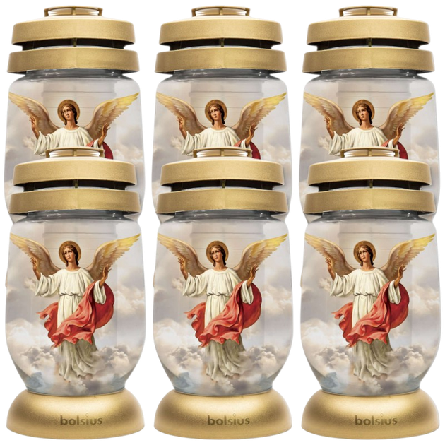 Декоративні ліхтарі Bolsius з мотивом ангела – це елегантний та символічний спосіб вшанувати пам'ять близьких з гідністю. Витончений дизайн ангела надає цим свічкам унікального, духовного характеру, що робить їх ідеальним доповненням до будь-якого місця пам'яті та прекрасним доповненням до будь-якого надгробку.
