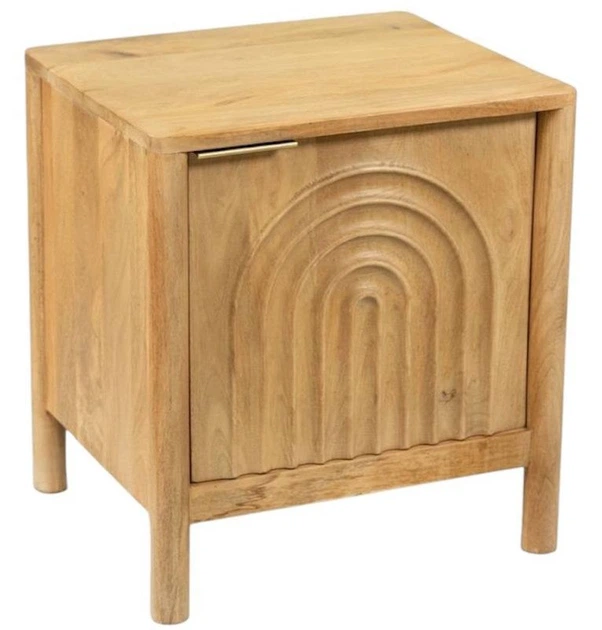 Szafka nocna to mebel, który przyda się w każdej sypialni. Umieszczona w pobliżu łóżka pozwoli wygodnie odłożyć używane przed snem przedmioty, bez konieczności wstawania. Szafka nocna SURAT z drewna mango to nie tylko funkcjonalny, ale także bardzo atrakcyjny mebel, który stanie się wspaniałym dopełnieniem aranżacji. Pod blatem umieszczono szafkę, która stworzy wygodną przestrzeń do przechowywania. Pięknie zdobione drzwiczki i nadające meblowi lekkości nóżki sprawiają, że szafka znakomicie się prezentuje.