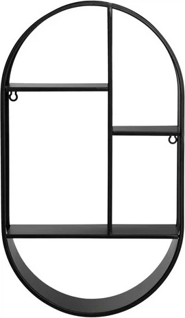 Настінна полиця SIIRI — це практичний спосіб упорядкувати простір і ефектно виставити улюблені предмети. Її овальна конструкція з 3 рівнями пропонує зручне місце для декорацій, книг, кімнатних рослин або інших предметів, які ви хочете мати під рукою і водночас виставити на показ. Розміри 35 × 60 см роблять полицю місткою, але при цьому вона не перевантажує інтер'єр.