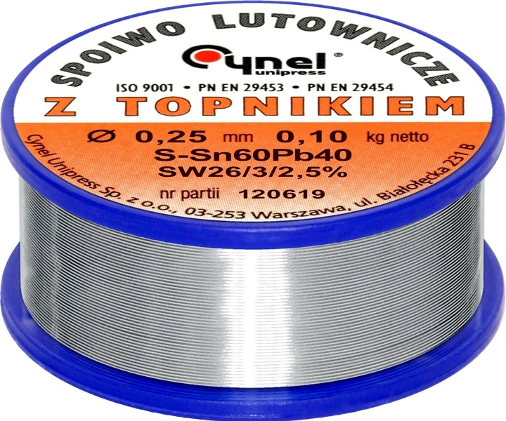 Сплав S-Sn60Pb40, виготовлений у першому виплавленні олова та свинцю, у безперервному процесі лиття без доступу повітря, а потім пресований, що забезпечує усунення оксидів. Припій CYNEL застосовується головним чином в електронній промисловості, для виробництва стандартних електронних пристроїв і компонентів, в електротехніці, а також для паяння елементів з олов'яним, олов'яно-свинцевим, кадмієвим, цинковим і срібним покриттям.