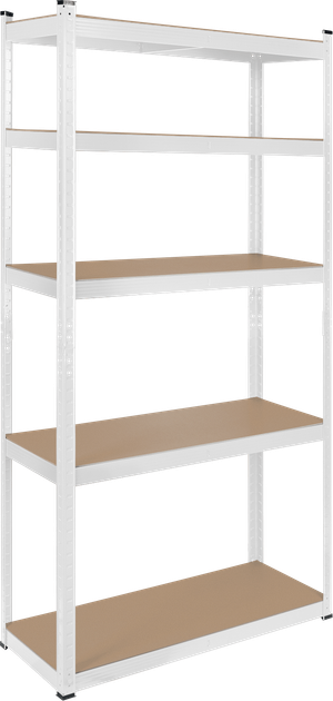 Стелаж оснащений 5 регульованими полицями, що залежно від потреб дає вам можливість довільно конфігурувати простір у майстерні або складі. Ви також можете регулювати відстань між полицями, щоб розмістити предмети різних розмірів.
