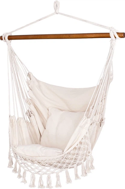 Підвісне крісло-гойдалка Springos HM022 — це затишне місце для відпочинку, яке подарує вам комфорт і розслаблення на природі, терасі чи балконі. М’яка тканина з бавовни та поліестеру забезпечує приємні тактильні відчуття та хорошу циркуляцію повітря, а великі розміри 130×100 см дозволяють зручно розташуватися дорослим і дітям. Легке погойдування сприяє відпочинку та створює атмосферу спокою, нагадуючи про приємні моменти відпустки. Міцна просочена рама з дерев’яною перекладиною довжиною 100 см та діаметром 3.3 см гарантує стабільність, а максимальне навантаження 150 кг робить крісло універсальним. У комплект входять дві зручні подушки та декоративні бахроми, що додають виробу стилю. Легке, компактне та довговічне, це крісло-гойдалка стане чудовою альтернативою шезлонгу та ідеальним місцем для читання, відпочинку або просто приємного проведення часу.