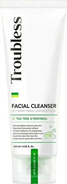 Troubless Facial Cleanser — делікатна та ефективна очищувальна пінка для обличчя, розроблена для видалення забруднень, надлишку себуму та залишків макіяжу, не сушачи та не подразнюючи шкіру. Підходить для всіх типів шкіри, включно з чутливою.