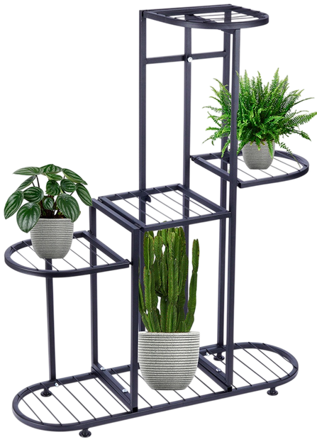 - П'ятирівнева квіткова полиця - П'ятирівнева квіткова полиця, яка дозволяє розмістити на п'яти різних рівнях горщики або декоративні елементи. Зовнішні розміри квіткової полиці становлять 69,5 x 23,5 x 84,5 см. Максимальне навантаження на одну полицю становить 3 кг. Нижня полиця має овальну форму і розміри 69,5 x 22 см, на ній можна розмістити три горщики. Решта три полиці мають розміри 22 x 22 см, а одна полиця має розміри 20,5 x 22 см.