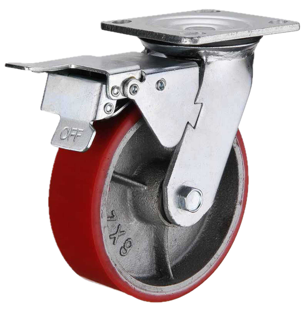 Колесо Haushalt D150 — міцне й надійне рішення для візків, платформ та транспортного обладнання. Виконане з металу та поліуретану, що забезпечує довговічність та плавний хід. Оснащене поворотним механізмом та гальмом для зручності та безпеки при використанні.
