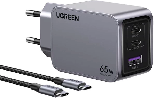 Зарядний пристрій Ugreen Nexode Pro 65W – це стаціонарний пристрій , призначений для використання вдома або в офісі, який постачається з 1,5-метровим кабелем USB-C для максимальної зручності.