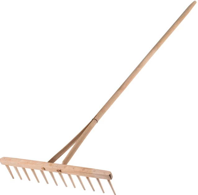 Граблі для сіна Kadax Hojden K1746 — це міцний, надійний та незамінний інструмент для роботи на лузі, полі чи присадибній ділянці. Завдяки великій робочій ширині 65 см та довжині 158 см, ці граблі дозволяють швидко та ефективно збирати сіно, упорядковувати його та виконувати інші господарські роботи на відкритому повітрі. Модель оснащена 12 великими зубцями, які захоплюють значно більший обсяг сіна, ніж стандартні граблі, що суттєво прискорює роботу. Довга дерев’яна ручка забезпечує комфортне користування без надмірного навантаження на спину, м’язи та суглоби, а дерев’яна головка поєднує легкість, міцність і стійкість до навантажень. Завдяки своїм розмірам та продуманій конструкції ці граблі ідеально підходять для великих площ, роблячи процес заготівлі сіна простішим, швидшим і значно зручнішим.