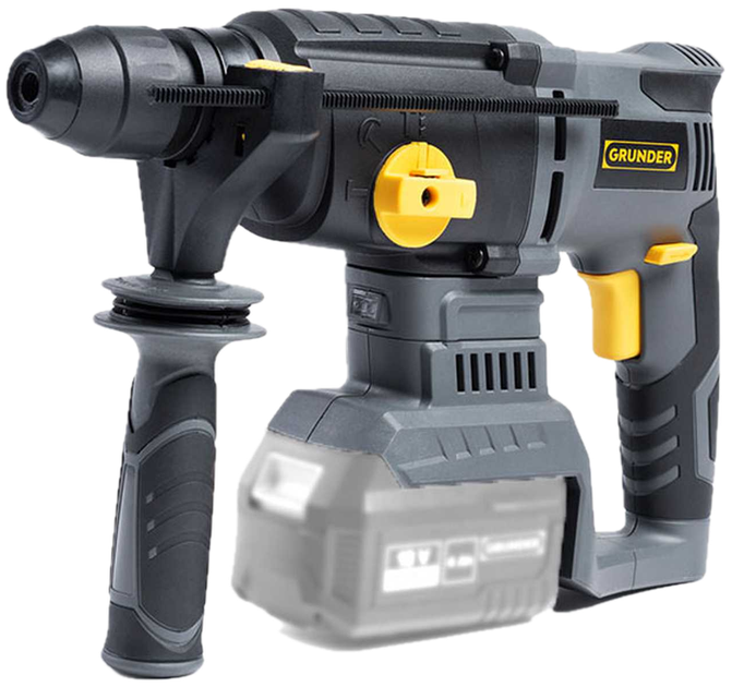 Акумуляторний перфоратор Grunder Z0C‑SKT‑LD2658 18 В — це легкий акумуляторний інструмент SDS‑Plus для свердління, свердління з ударом, довбання та звичайного свердління в бетоні, дереві і сталі. Обладнаний безщітковим двигуном, що забезпечує кращу продуктивність та ефективність, а також LED‑підсвіткою для кращої видимості робочої зони. Ергономічна анти‑вібраційна рукоятка підвищує комфорт при роботі.