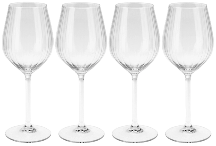 - Набір із 4 винних келихів – Цей набір келихів призначений переважно для подачі білого вина, але вони також підходять для червоного вина, води та інших напоїв. Розмір кожного келиха – 8 x 21.5 см, а максимальний об’єм – 380 мл. Це ідеальний вибір як для щоденного використання, так і для особливих випадків.