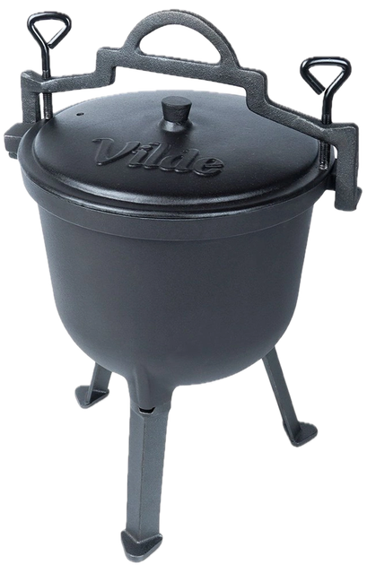 Круглий чавунний казан на ніжках з кришкою та ручкою для підвішування. Ідеально підходить для приготування їжі, випікання, тушкування та смаження на багатті, грилі або на відкритому вогні. Страви, приготовані в казані, будуть соковитими та ароматними. Стане у пригоді для різних зустрічей, святкувань та заходів на свіжому повітрі. Оригінальний продукт Vilde з лінійки Cast. Виготовлено відповідно до європейських стандартів.