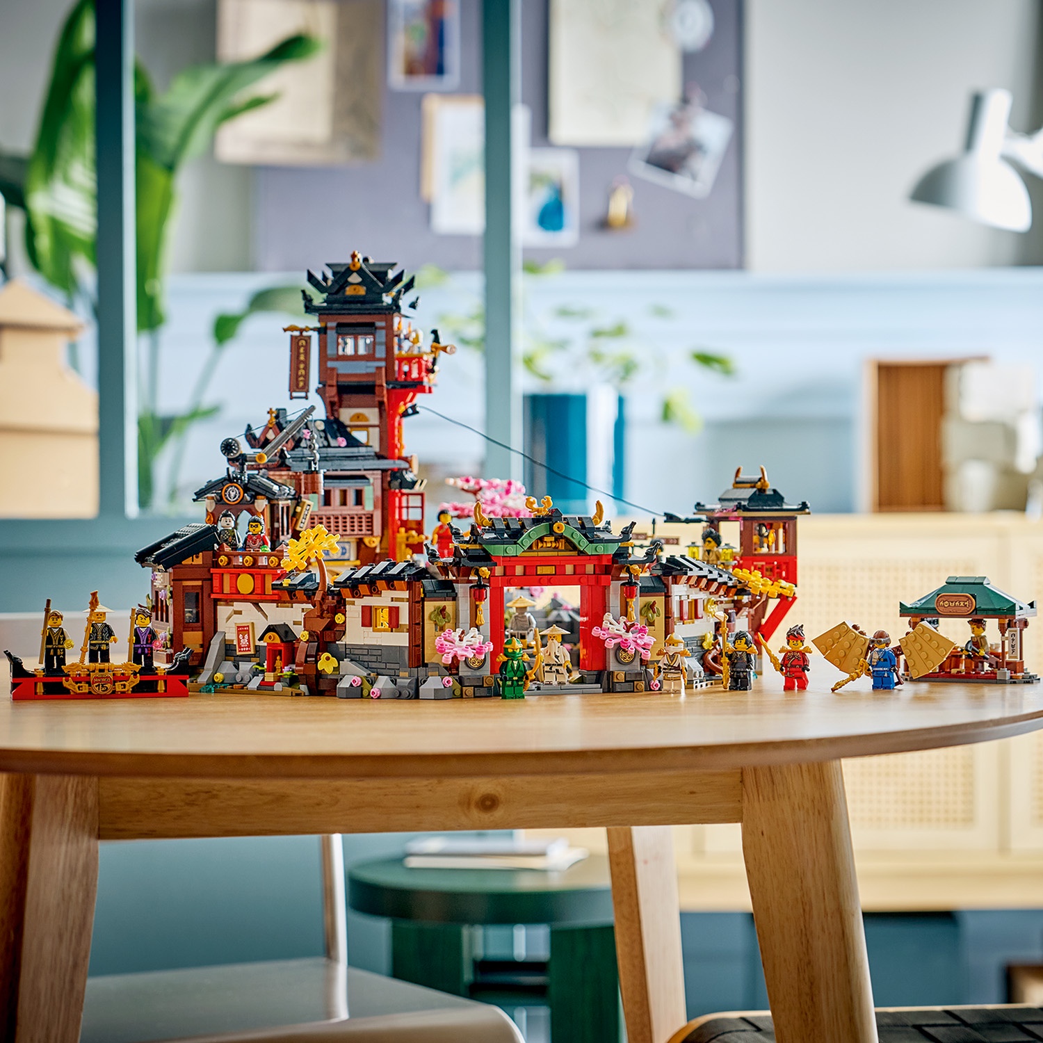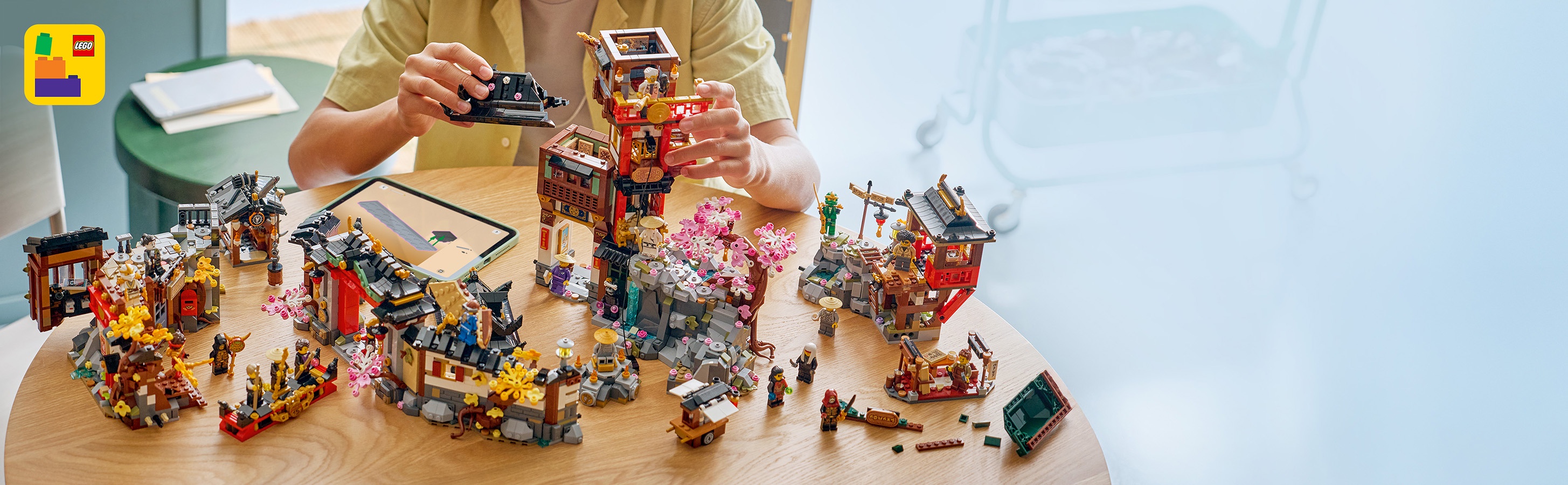 Порадуйте шанувальників ніндзя цим набором LEGO NINJAGO з 4 з'єднувальними моделями будівель і 23 мініфігурками.