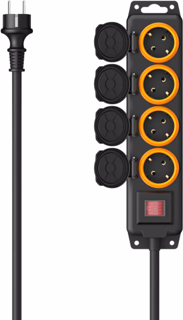 Чотириконтактна розетка Hama – ідеальне рішення для живлення електричних пристроїв на відкритому повітрі , забезпечуючи високий рівень захисту та функціональності . Завдяки класу захисту IP44 вона захищена від бризок, що робить її ідеальною для використання в саду, гаражі або на будівельному майданчику.