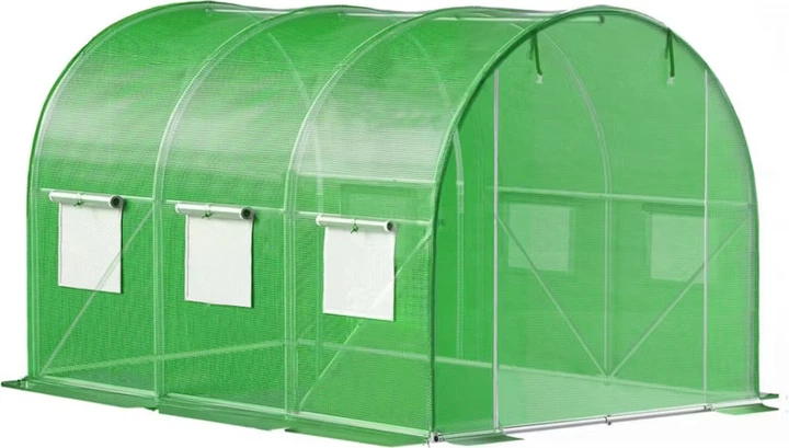 Функціональність виробу забезпечується 6 вікнами з москітними сітками для вентиляції та вхідними дверима на застібці-блискавці, які можна зафіксувати у вигляді ролети. Для надійної інсталяції передбачений земляний комір, а також комплект із 4 шпильок та шнурків для натягу. Прозора плівка із зеленою клітинкою 1х1 см створює сприятливий світловий режим, а повний набір монтажних елементів дозволяє швидко провести самостійну збірку за інструкцією.